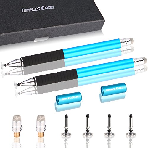 Dimples Excel Präzision Stylus pen kapazitiver stift Eingabestifte for Ipad Pro Kindle Tablet Touchscreen Smartphone mit Ersatzspitzen (Blau + Blau). Dimples Excel 2 in 1 Extreme Precision Disc Stylus