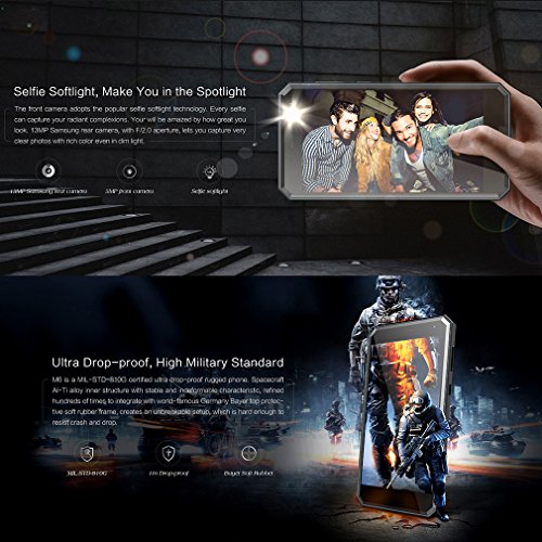 - ★ã€5,0 Zoll IPS Display,10 MM Dünn】 HD 1280 * 720pixel Auflösung, mit 5 Zoll 2.5D Bildschirm, robustes Coring Gorilla Glass 3, empfindlicher Multi-Touch Touchscreen. 3000mAh fest installierte ein ganzer Tag Batterie. 10MM dünnes und spiegelartiges Shinning des Körpers macht es zu einem modischen, aber robusten Smartphone. Robuste Outdoor smartphones sind nicht immer altmodisch - Geeignet für Jung und Alt.